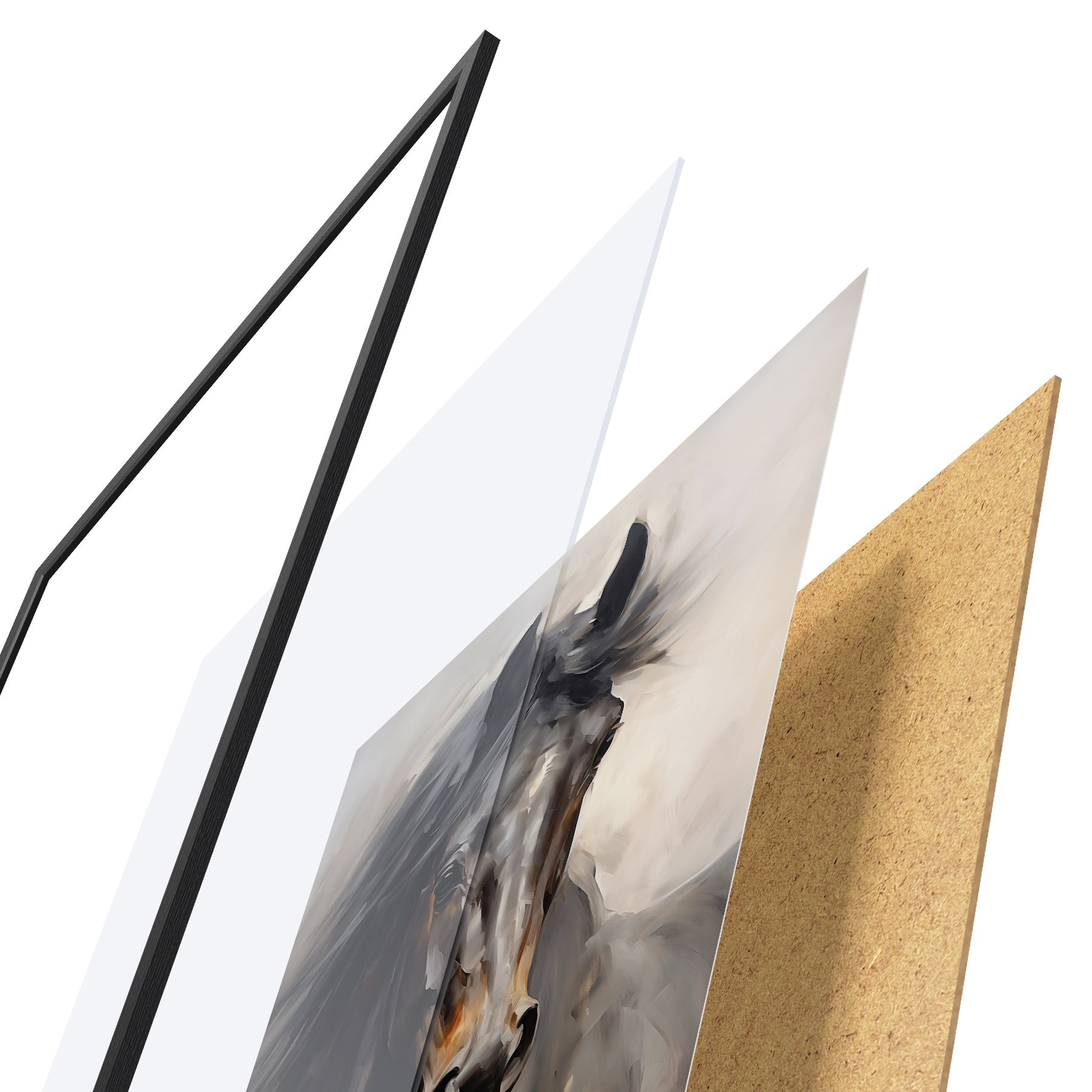 Plakát se skládá z rámu, plexiskla, tištěného obrazu a dřevotřískového podkladu. Díky úchytům na zadní straně lze plakát ihned zavěsit na zeď.