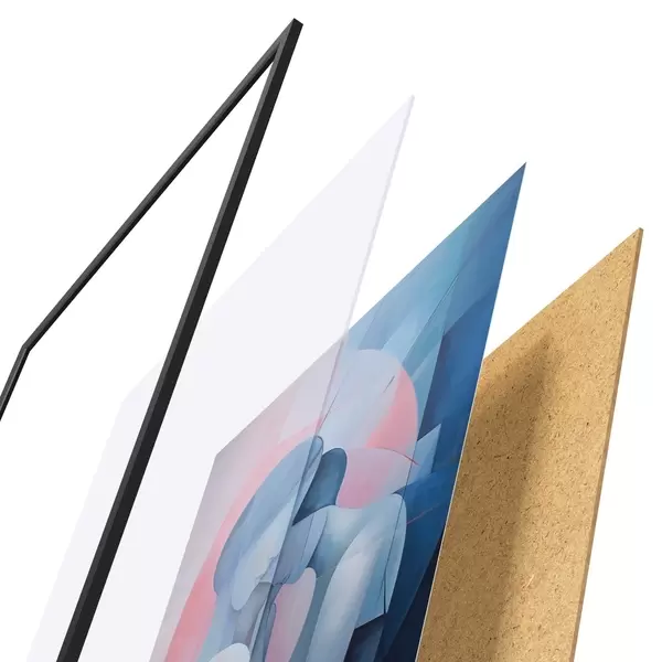 Plakát se skládá z rámu, plexiskla, tištěného obrazu a dřevotřískového podkladu. Díky úchytům na zadní straně lze plakát ihned zavěsit na zeď.