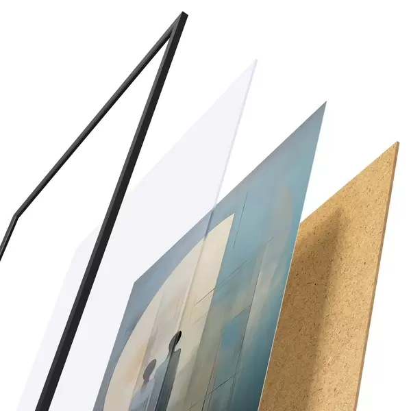 Plakát se skládá z rámu, plexiskla, tištěného obrazu a dřevotřískového podkladu. Díky úchytům na zadní straně lze plakát ihned zavěsit na zeď.