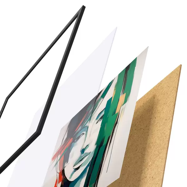 Plakát se skládá z rámu, plexiskla, tištěného obrazu a dřevotřískového podkladu. Díky úchytům na zadní straně lze plakát ihned zavěsit na zeď.