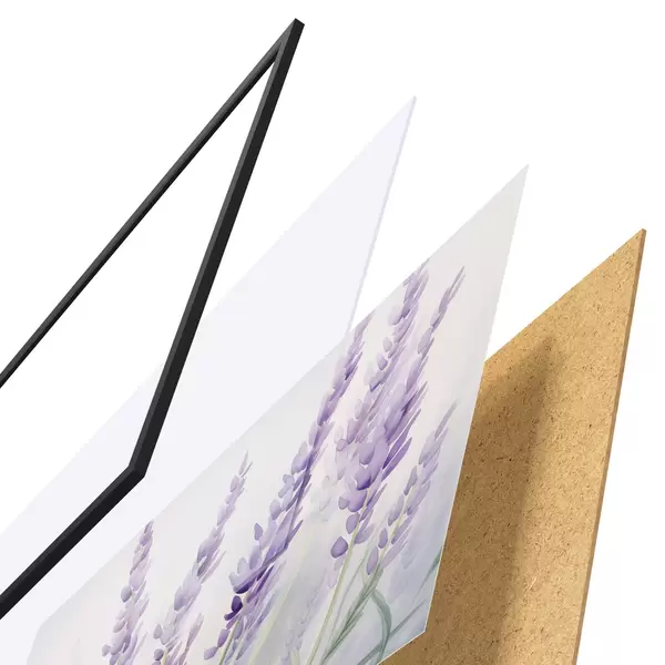 Plakát se skládá z rámu, plexiskla, tištěného obrazu a dřevotřískového podkladu. Díky úchytům na zadní straně lze plakát ihned zavěsit na zeď.