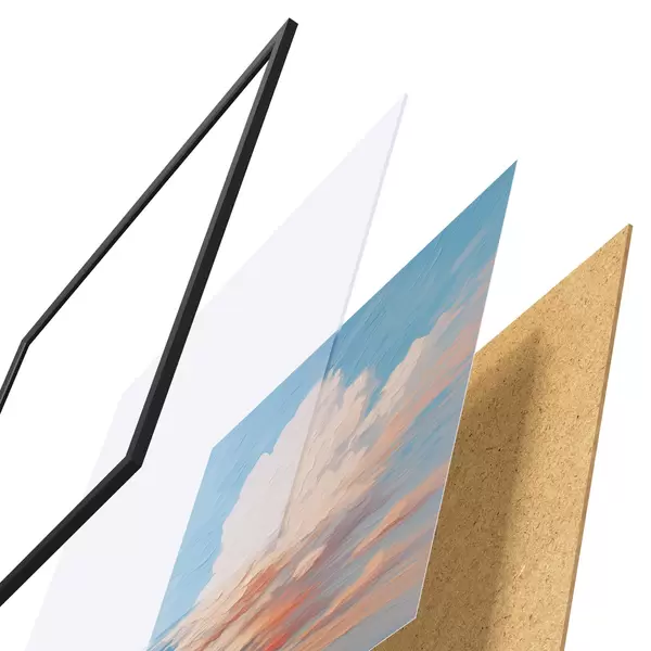 Plakát se skládá z rámu, plexiskla, tištěného obrazu a dřevotřískového podkladu. Díky úchytům na zadní straně lze plakát ihned zavěsit na zeď.
