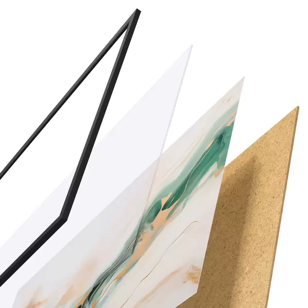 Plakát se skládá z rámu, plexiskla, tištěného obrazu a dřevotřískového podkladu. Díky úchytům na zadní straně lze plakát ihned zavěsit na zeď.