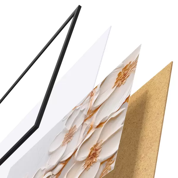 Plakát se skládá z rámu, plexiskla, tištěného obrazu a dřevotřískového podkladu. Díky úchytům na zadní straně lze plakát ihned zavěsit na zeď.