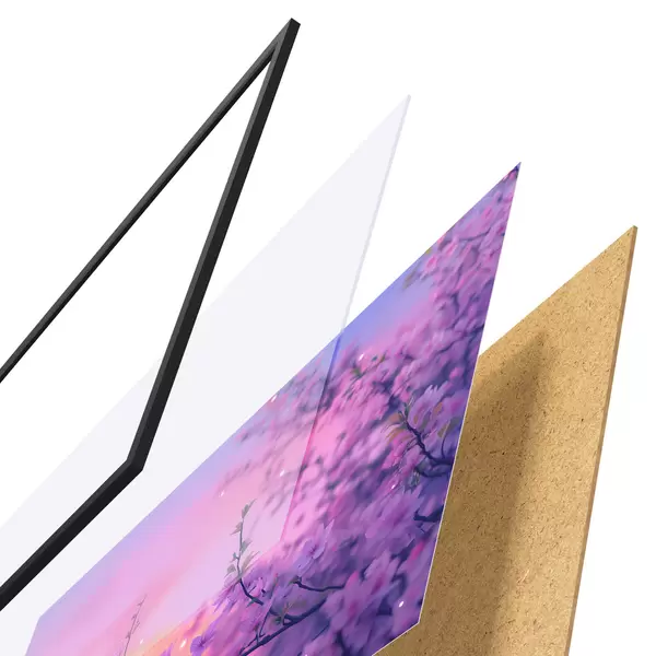 Plakát se skládá z rámu, plexiskla, tištěného obrazu a dřevotřískového podkladu. Díky úchytům na zadní straně lze plakát ihned zavěsit na zeď.