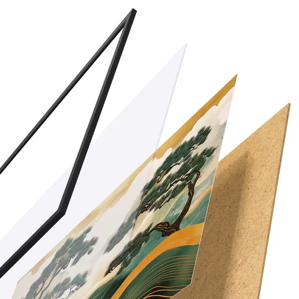 Plakát se skládá z rámu, plexiskla, tištěného obrazu a dřevotřískového podkladu. Díky úchytům na zadní straně lze plakát ihned zavěsit na zeď.