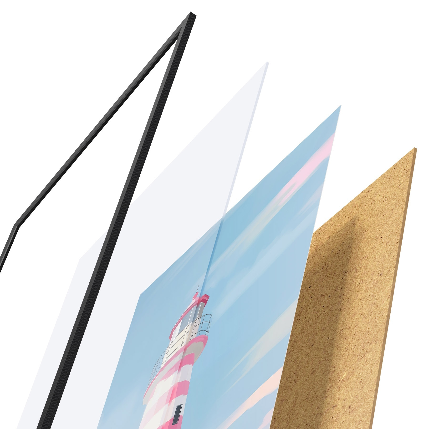 Plakát se skládá z rámu, plexiskla, tištěného obrazu a dřevotřískového podkladu. Díky úchytům na zadní straně lze plakát ihned zavěsit na zeď.