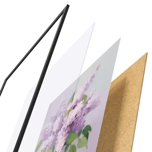 Plakát se skládá z rámu, plexiskla, tištěného obrazu a dřevotřískového podkladu. Díky úchytům na zadní straně lze plakát ihned zavěsit na zeď.