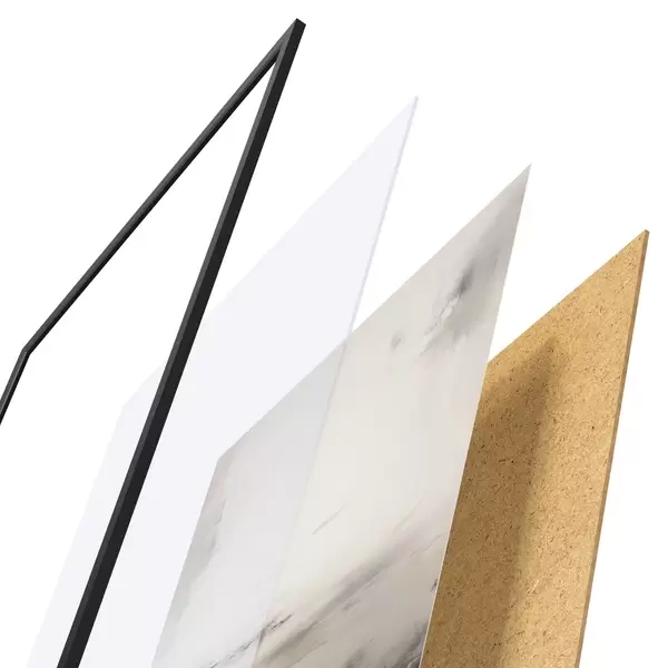 Plakát se skládá z rámu, plexiskla, tištěného obrazu a dřevotřískového podkladu. Díky úchytům na zadní straně lze plakát ihned zavěsit na zeď.