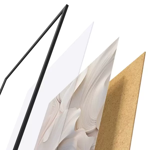 Plakát se skládá z rámu, plexiskla, tištěného obrazu a dřevotřískového podkladu. Díky úchytům na zadní straně lze plakát ihned zavěsit na zeď.