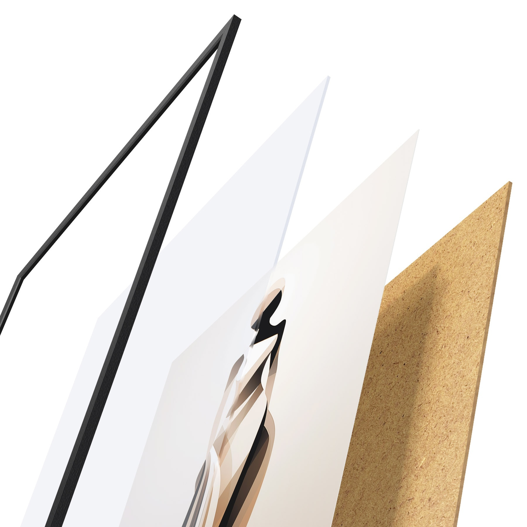 Plakát se skládá z rámu, plexiskla, tištěného obrazu a dřevotřískového podkladu. Díky úchytům na zadní straně lze plakát ihned zavěsit na zeď.
