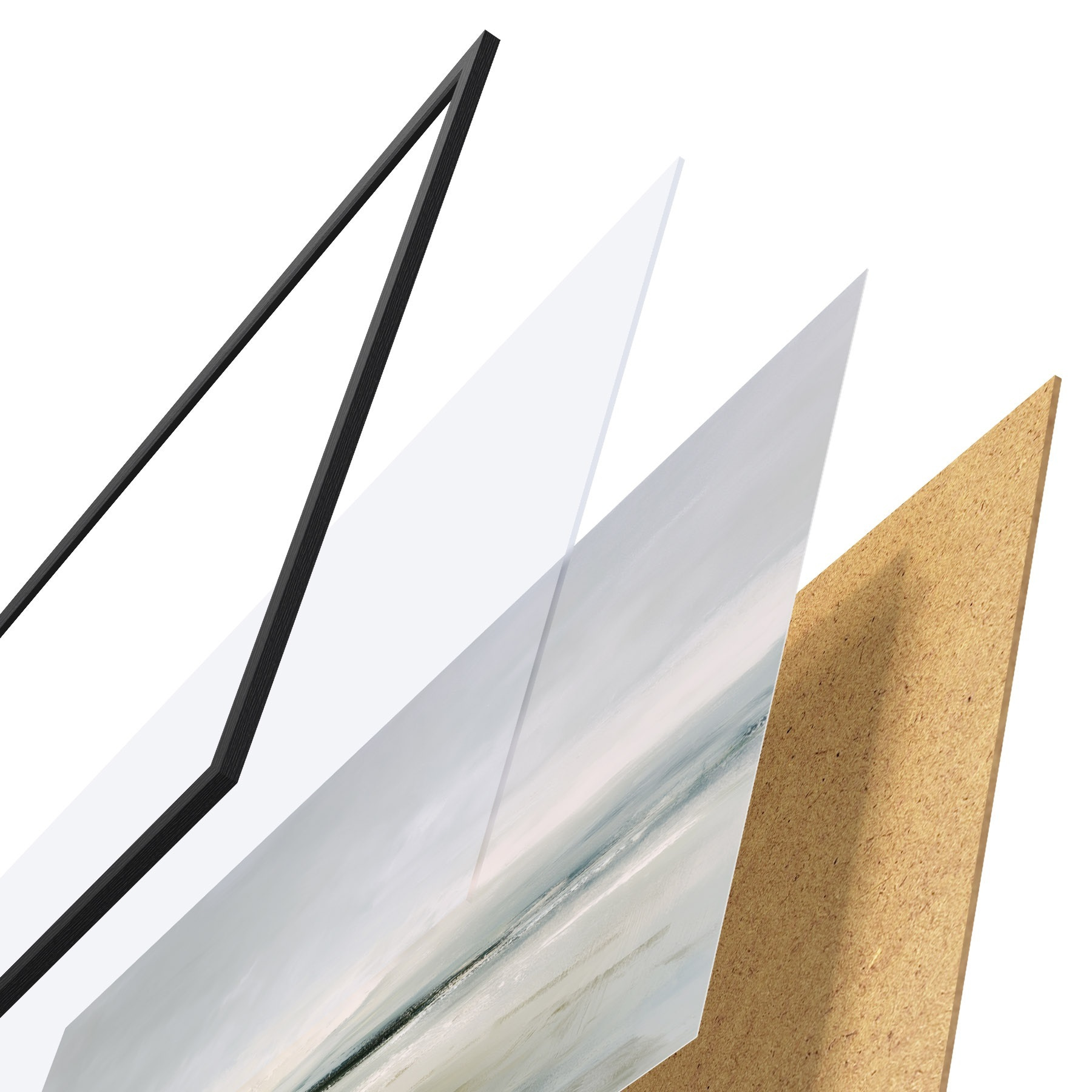 Plakát se skládá z rámu, plexiskla, tištěného obrazu a dřevotřískového podkladu. Díky úchytům na zadní straně lze plakát ihned zavěsit na zeď.