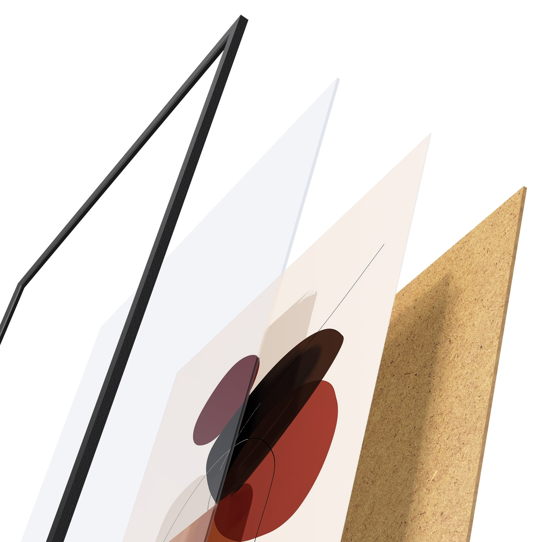 Plakát se skládá z rámu, plexiskla, tištěného obrazu a dřevotřískového podkladu. Díky úchytům na zadní straně lze plakát ihned zavěsit na zeď.