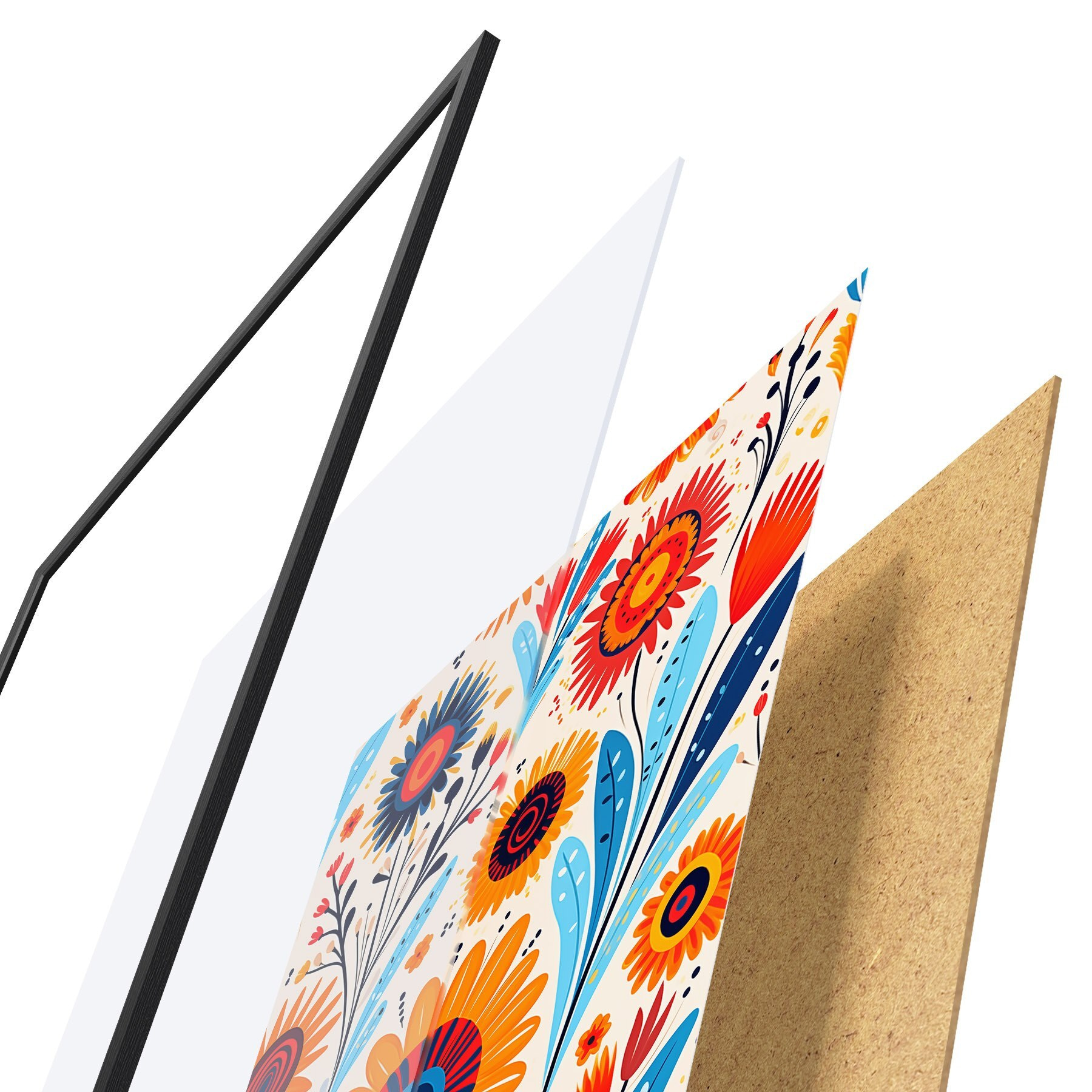 Plakát se skládá z rámu, plexiskla, tištěného obrazu a dřevotřískového podkladu. Díky úchytům na zadní straně lze plakát ihned zavěsit na zeď.