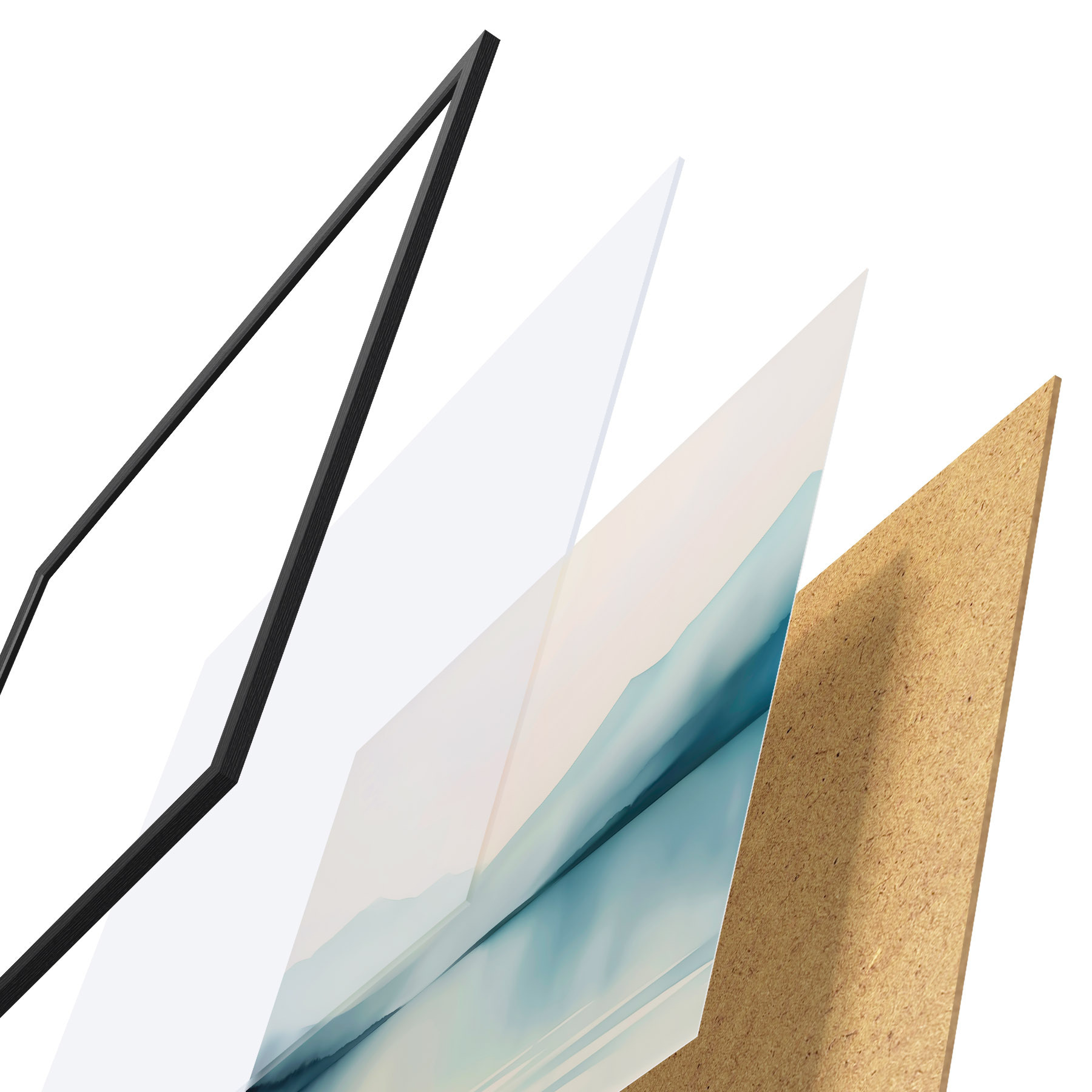 Plakát se skládá z rámu, plexiskla, tištěného obrazu a dřevotřískového podkladu. Díky úchytům na zadní straně lze plakát ihned zavěsit na zeď.