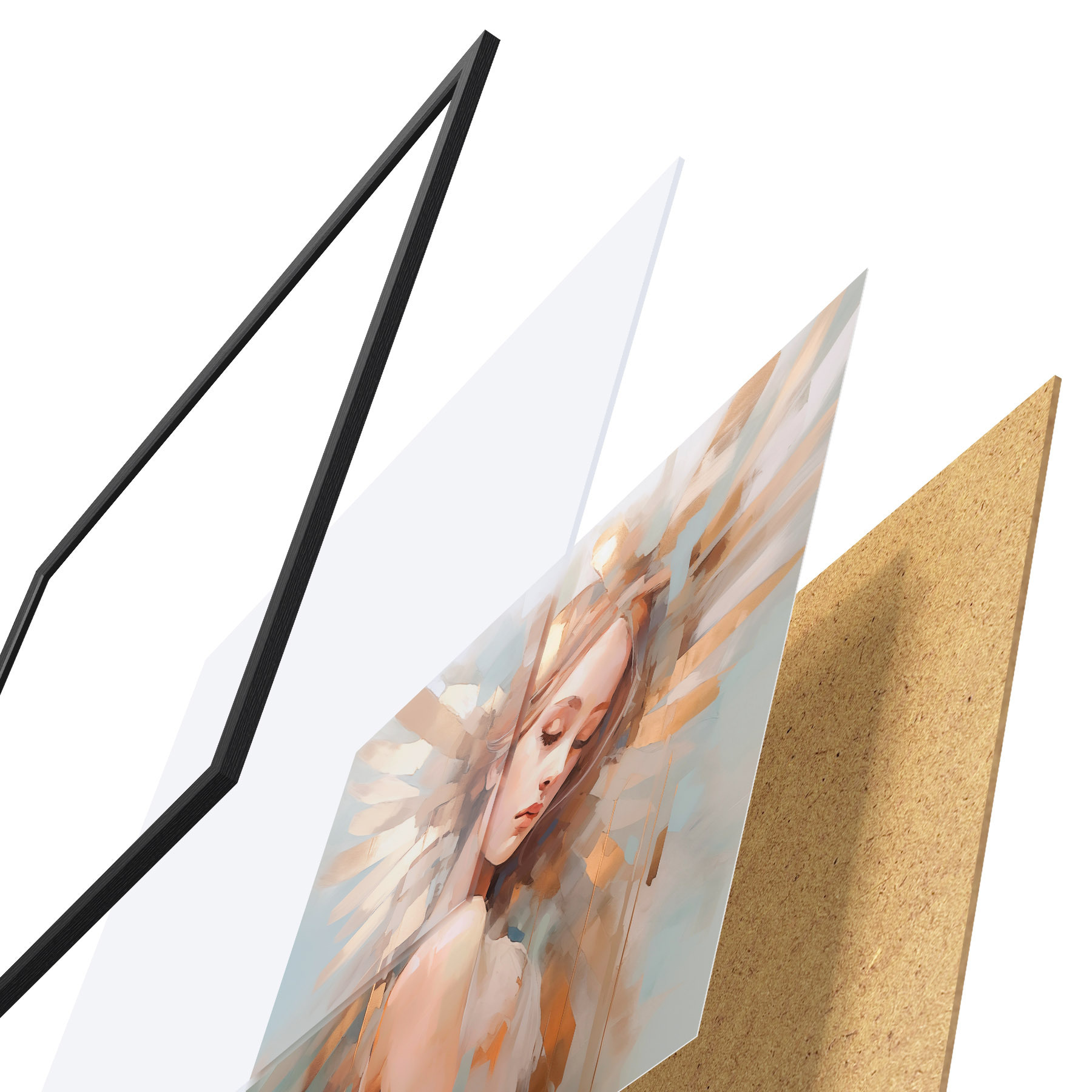 Plakát se skládá z rámu, plexiskla, tištěného obrazu a dřevotřískového podkladu. Díky úchytům na zadní straně lze plakát ihned zavěsit na zeď.