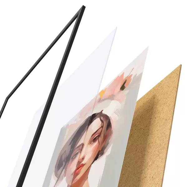 Plakát se skládá z rámu, plexiskla, tištěného obrazu a dřevotřískového podkladu. Díky úchytům na zadní straně lze plakát ihned zavěsit na zeď.