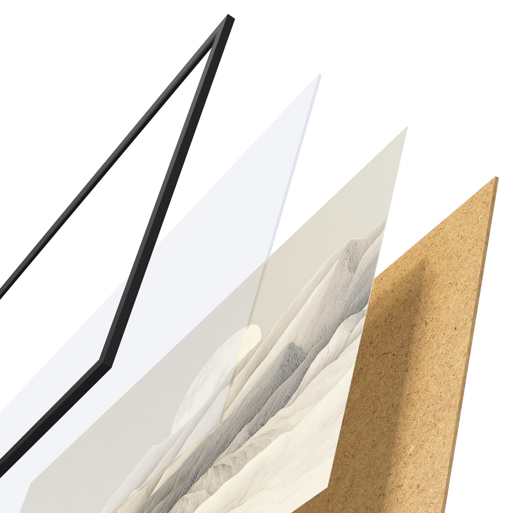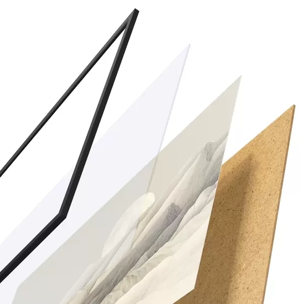Plakát se skládá z rámu, plexiskla, tištěného obrazu a dřevotřískového podkladu. Díky úchytům na zadní straně lze plakát ihned zavěsit na zeď.