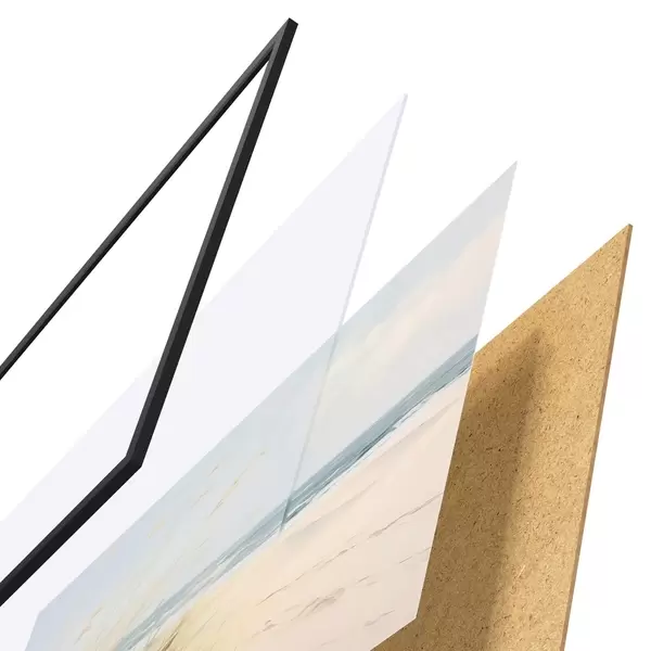 Plakát se skládá z rámu, plexiskla, tištěného obrazu a dřevotřískového podkladu. Díky úchytům na zadní straně lze plakát ihned zavěsit na zeď.