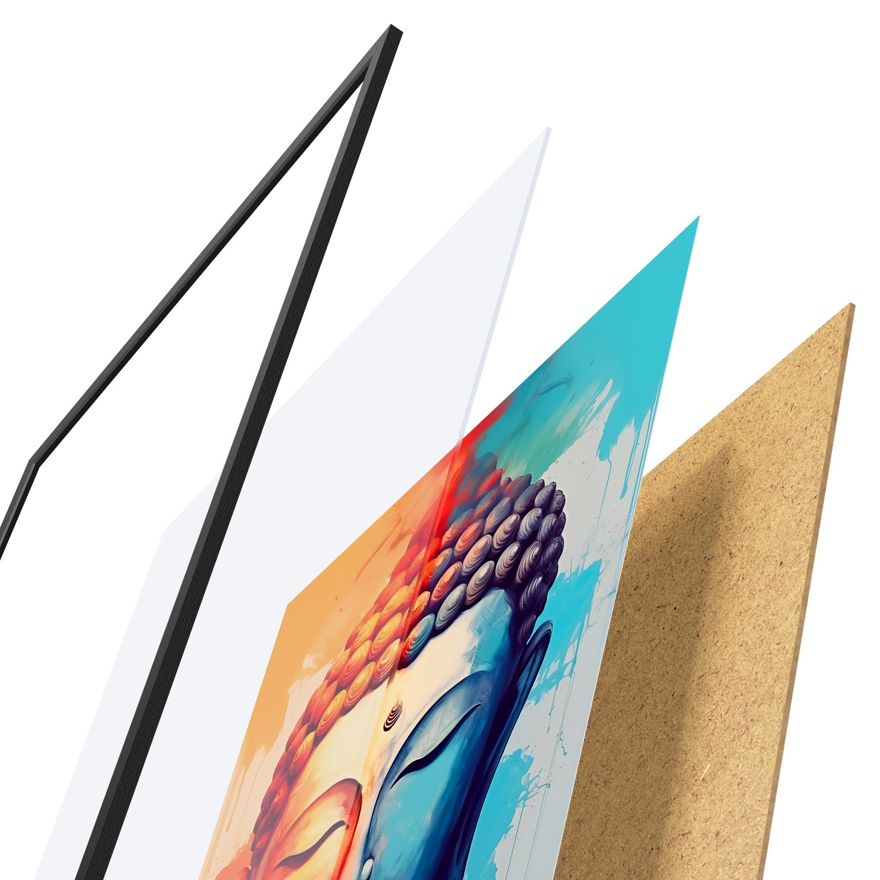 Plakát se skládá z rámu, plexiskla, tištěného obrazu a dřevotřískového podkladu. Díky úchytům na zadní straně lze plakát ihned zavěsit na zeď.