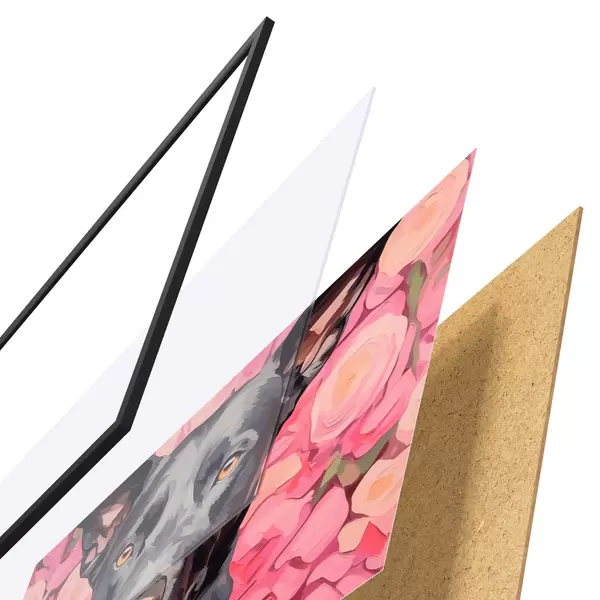 Plakát se skládá z rámu, plexiskla, tištěného obrazu a dřevotřískového podkladu. Díky úchytům na zadní straně lze plakát ihned zavěsit na zeď.