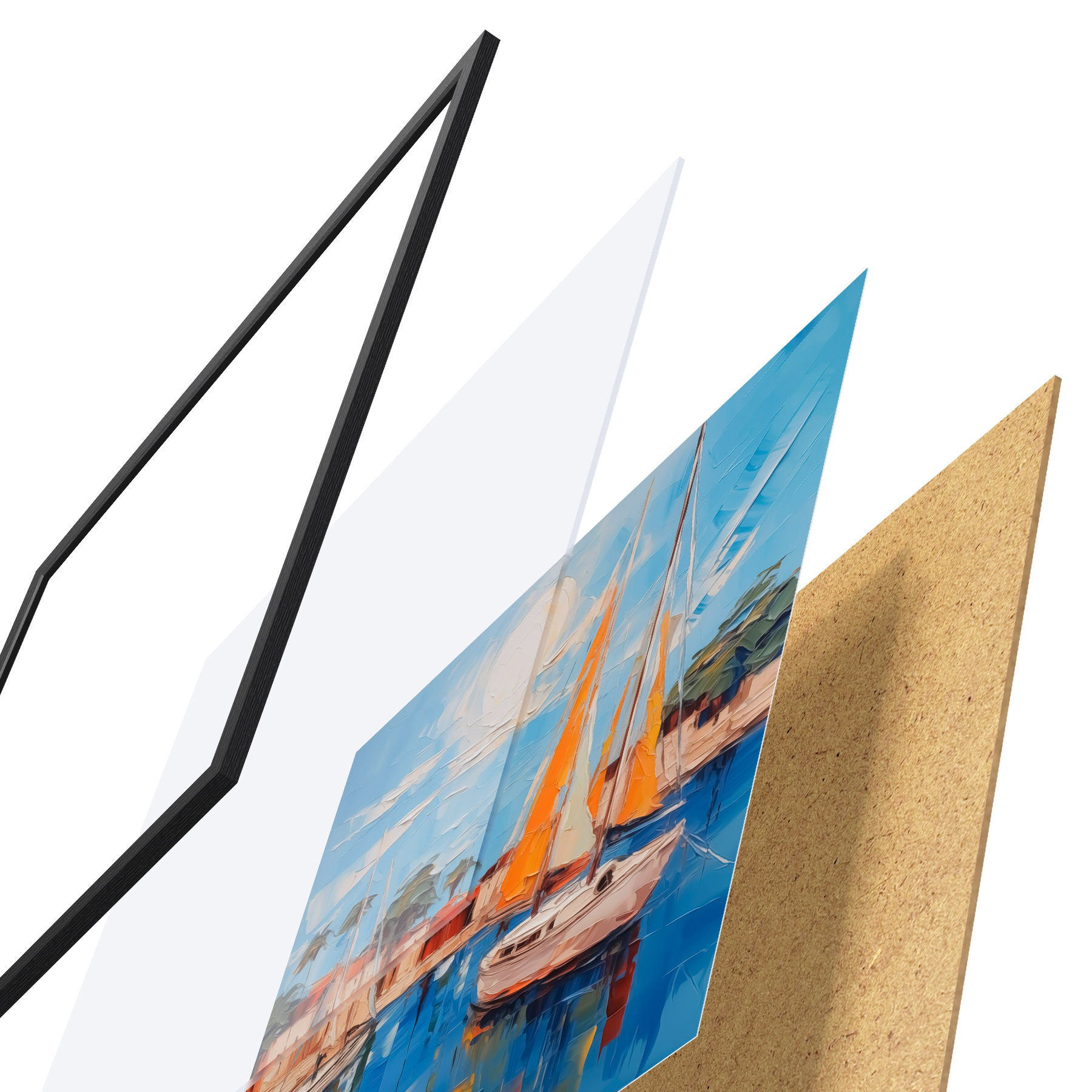 Plakát se skládá z rámu, plexiskla, tištěného obrazu a dřevotřískového podkladu. Díky úchytům na zadní straně lze plakát ihned zavěsit na zeď.