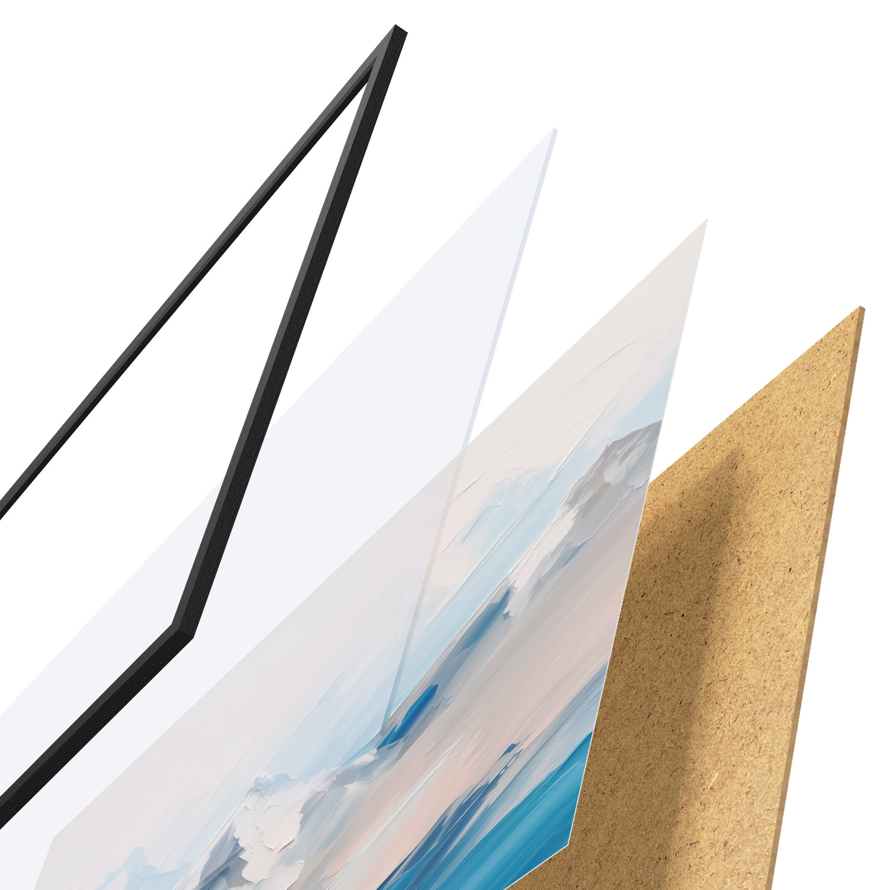 Plakát se skládá z rámu, plexiskla, tištěného obrazu a dřevotřískového podkladu. Díky úchytům na zadní straně lze plakát ihned zavěsit na zeď.