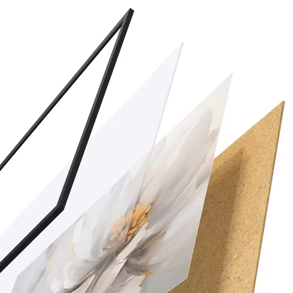 Plakát se skládá z rámu, plexiskla, tištěného obrazu a dřevotřískového podkladu. Díky úchytům na zadní straně lze plakát ihned zavěsit na zeď.