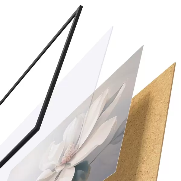 Plakát se skládá z rámu, plexiskla, tištěného obrazu a dřevotřískového podkladu. Díky úchytům na zadní straně lze plakát ihned zavěsit na zeď.