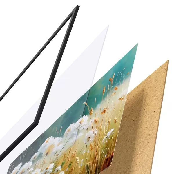 Plakát se skládá z rámu, plexiskla, tištěného obrazu a dřevotřískového podkladu. Díky úchytům na zadní straně lze plakát ihned zavěsit na zeď.