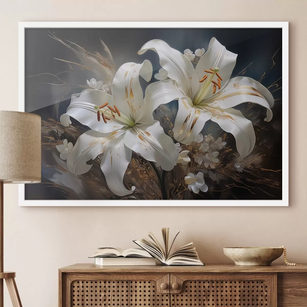 Nedoporučujeme umístit obraz přímo na sluneční světlo nebo do vlhké místnosti. To může časem ztlumit jas obrazu.