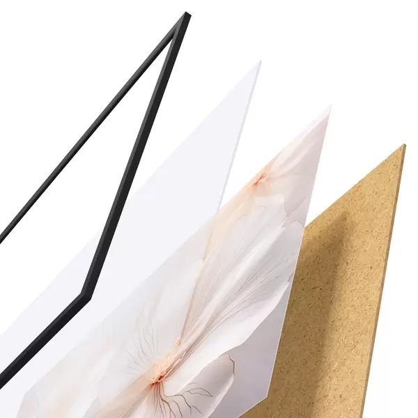Plakát se skládá z rámu, plexiskla, tištěného obrazu a dřevotřískového podkladu. Díky úchytům na zadní straně lze plakát ihned zavěsit na zeď.