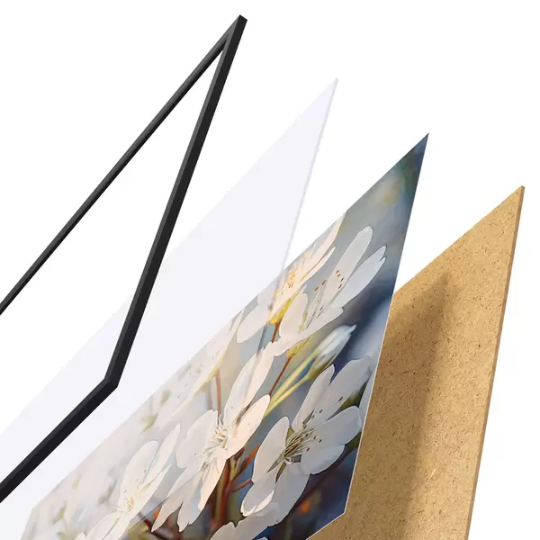 Plakát se skládá z rámu, plexiskla, tištěného obrazu a dřevotřískového podkladu. Díky úchytům na zadní straně lze plakát ihned zavěsit na zeď.