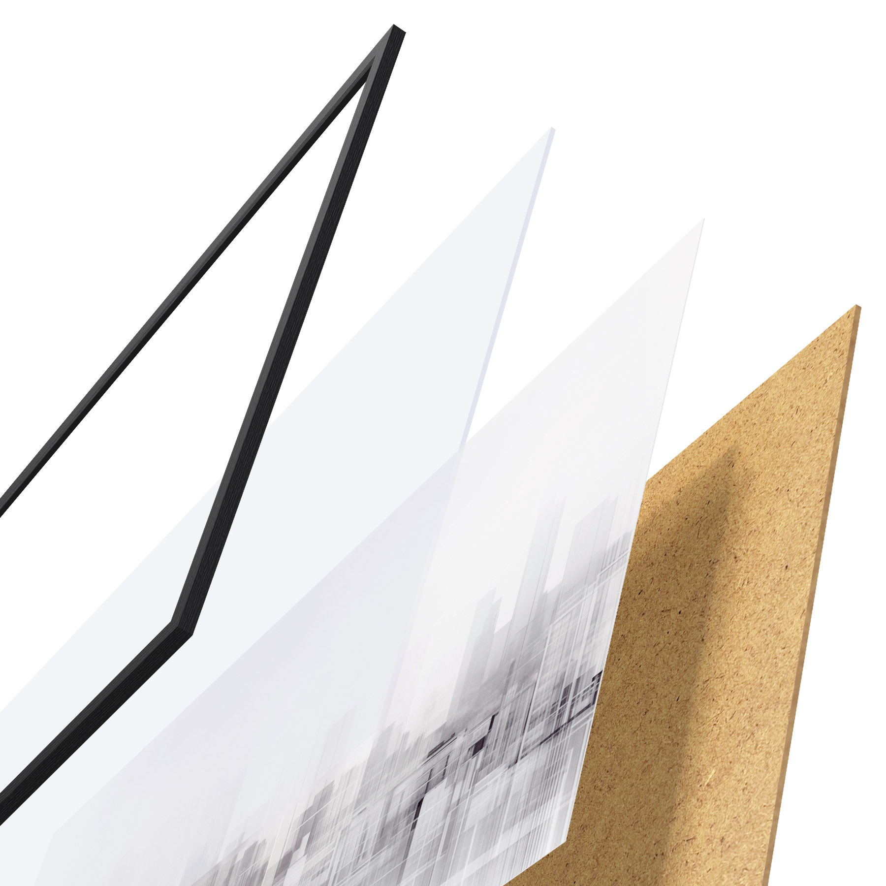 Plakát se skládá z rámu, plexiskla, tištěného obrazu a dřevotřískového podkladu. Díky úchytům na zadní straně lze plakát ihned zavěsit na zeď.