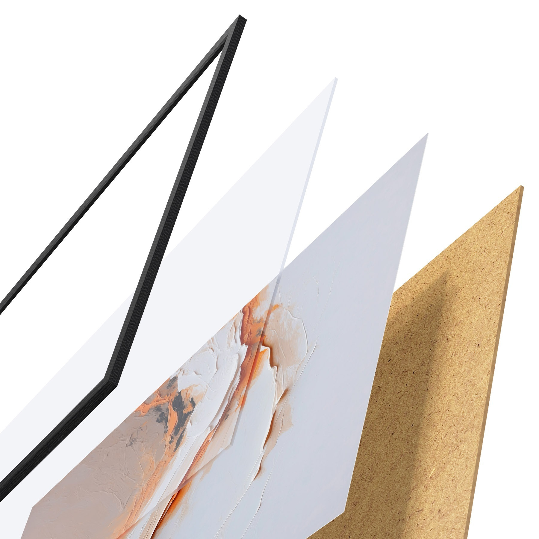 Plakát se skládá z rámu, plexiskla, tištěného obrazu a dřevotřískového podkladu. Díky úchytům na zadní straně lze plakát ihned zavěsit na zeď.