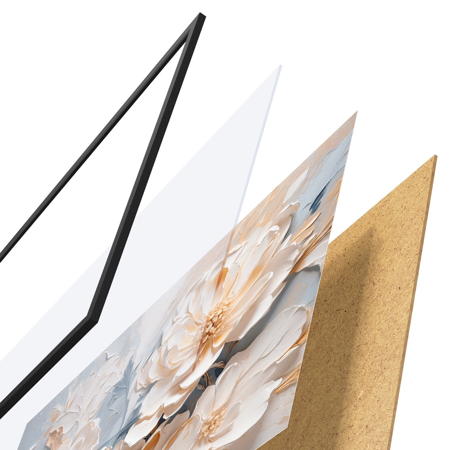 Plakát se skládá z rámu, plexiskla, tištěného obrazu a dřevotřískového podkladu. Díky úchytům na zadní straně lze plakát ihned zavěsit na zeď.