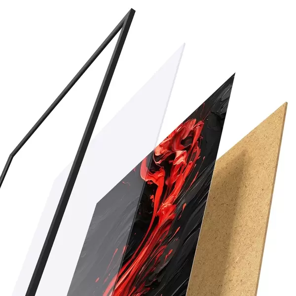 Plakát se skládá z rámu, plexiskla, tištěného obrazu a dřevotřískového podkladu. Díky úchytům na zadní straně lze plakát ihned zavěsit na zeď.