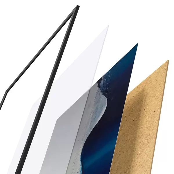 Plakát se skládá z rámu, plexiskla, tištěného obrazu a dřevotřískového podkladu. Díky úchytům na zadní straně lze plakát ihned zavěsit na zeď.