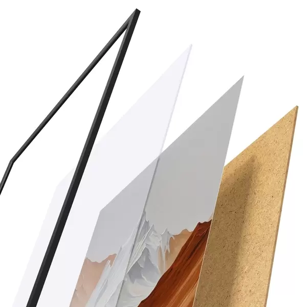 Plakát se skládá z rámu, plexiskla, tištěného obrazu a dřevotřískového podkladu. Díky úchytům na zadní straně lze plakát ihned zavěsit na zeď.