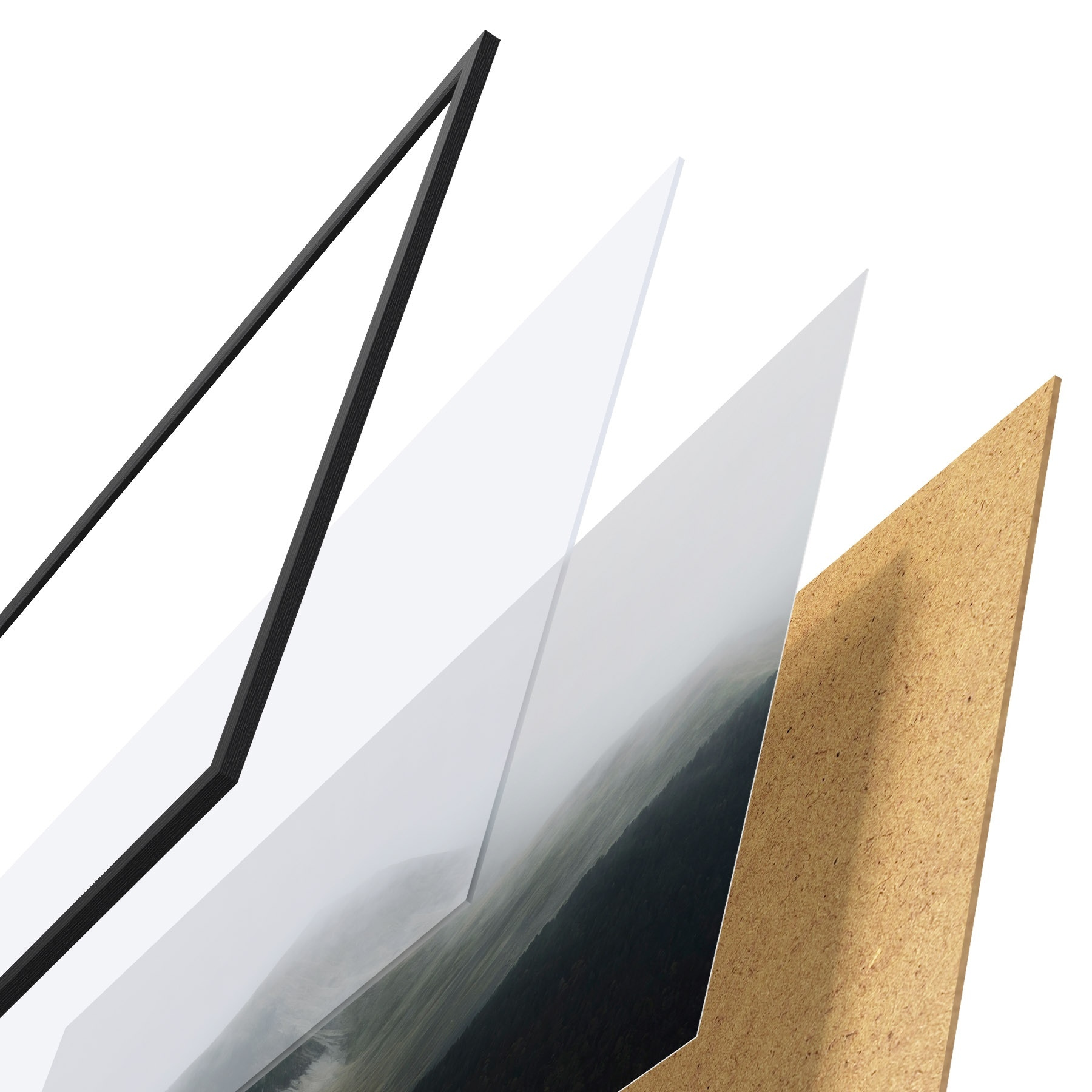 Plakát se skládá z rámu, plexiskla, tištěného obrazu a dřevotřískového podkladu. Díky úchytům na zadní straně lze plakát ihned zavěsit na zeď.
