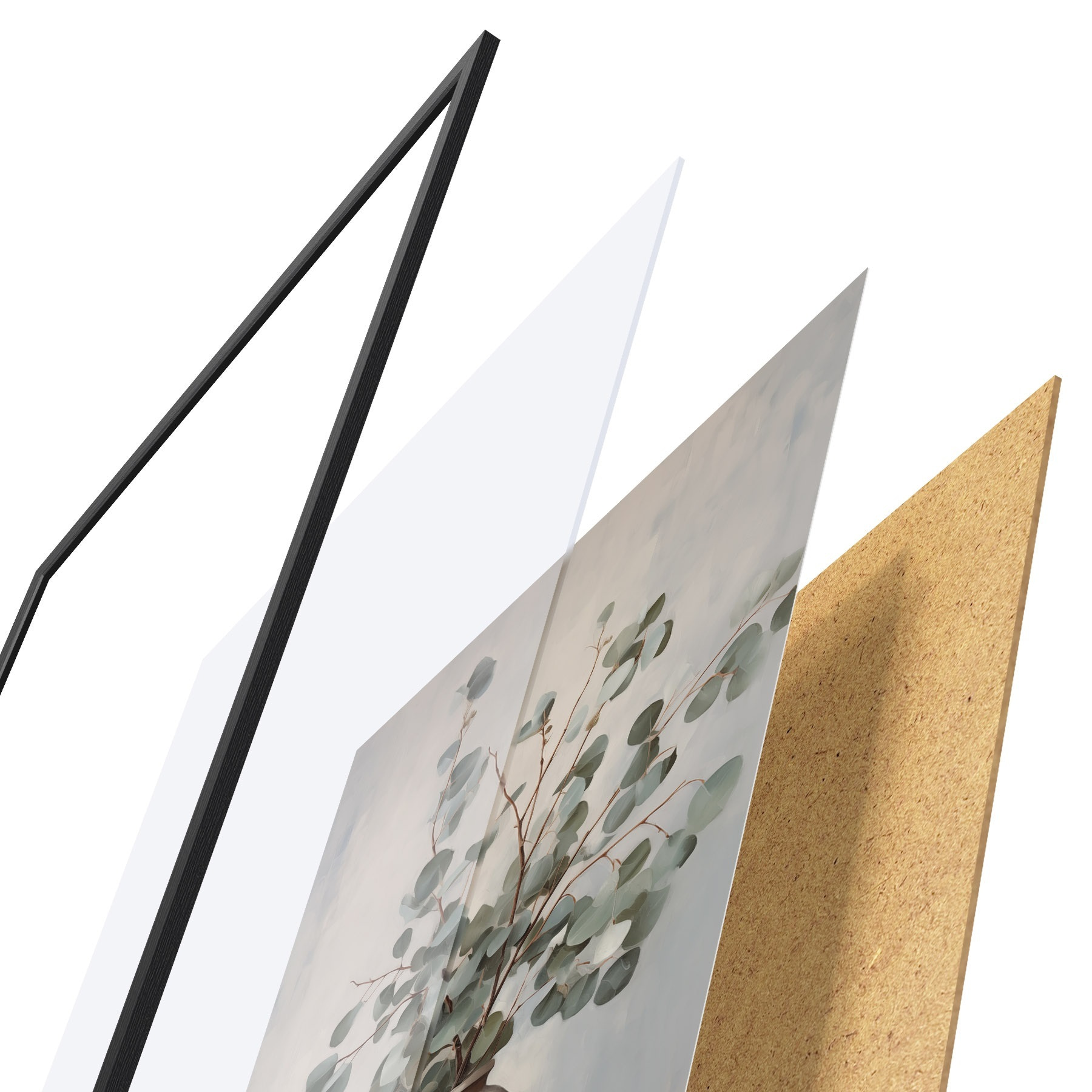 Plakát se skládá z rámu, plexiskla, tištěného obrazu a dřevotřískového podkladu. Díky úchytům na zadní straně lze plakát ihned zavěsit na zeď.