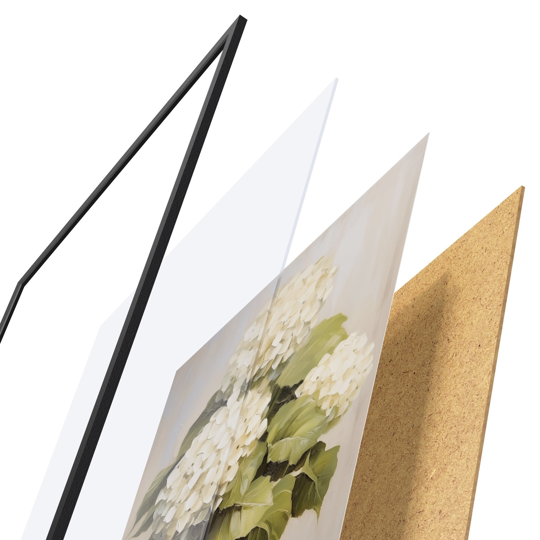 Plakát se skládá z rámu, plexiskla, tištěného obrazu a dřevotřískového podkladu. Díky úchytům na zadní straně lze plakát ihned zavěsit na zeď.