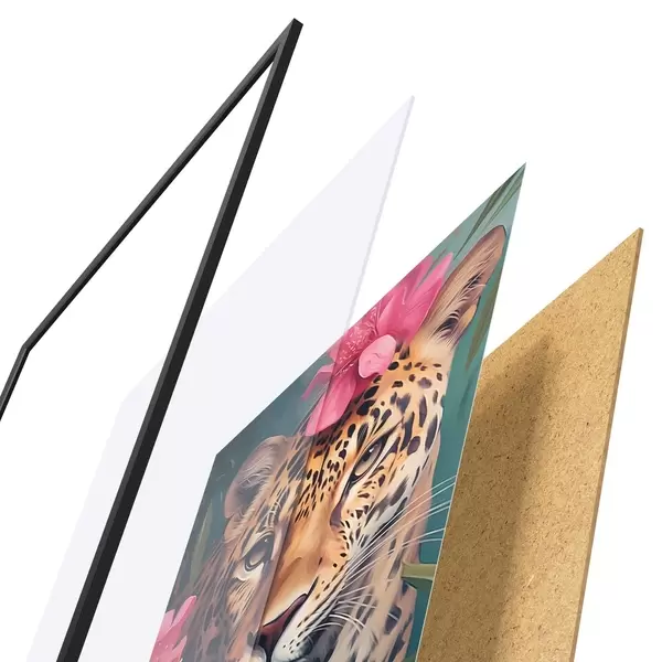 Plakát se skládá z rámu, plexiskla, tištěného obrazu a dřevotřískového podkladu. Díky úchytům na zadní straně lze plakát ihned zavěsit na zeď.