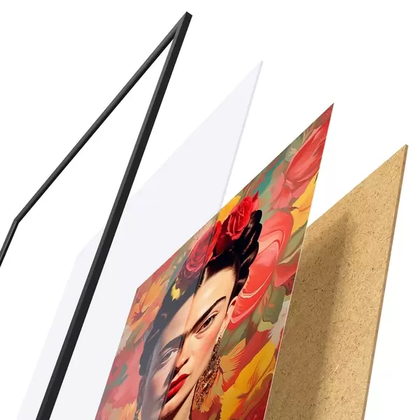 Plakát se skládá z rámu, plexiskla, tištěného obrazu a dřevotřískového podkladu. Díky úchytům na zadní straně lze plakát ihned zavěsit na zeď.