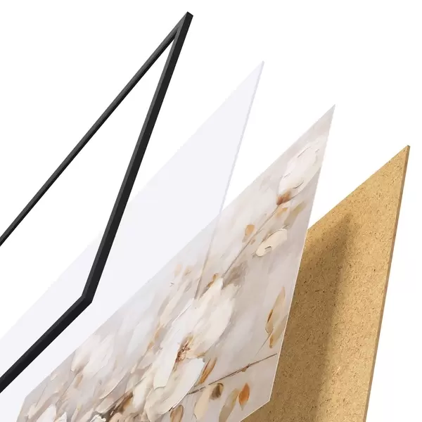 Plakát se skládá z rámu, plexiskla, tištěného obrazu a dřevotřískového podkladu. Díky úchytům na zadní straně lze plakát ihned zavěsit na zeď.