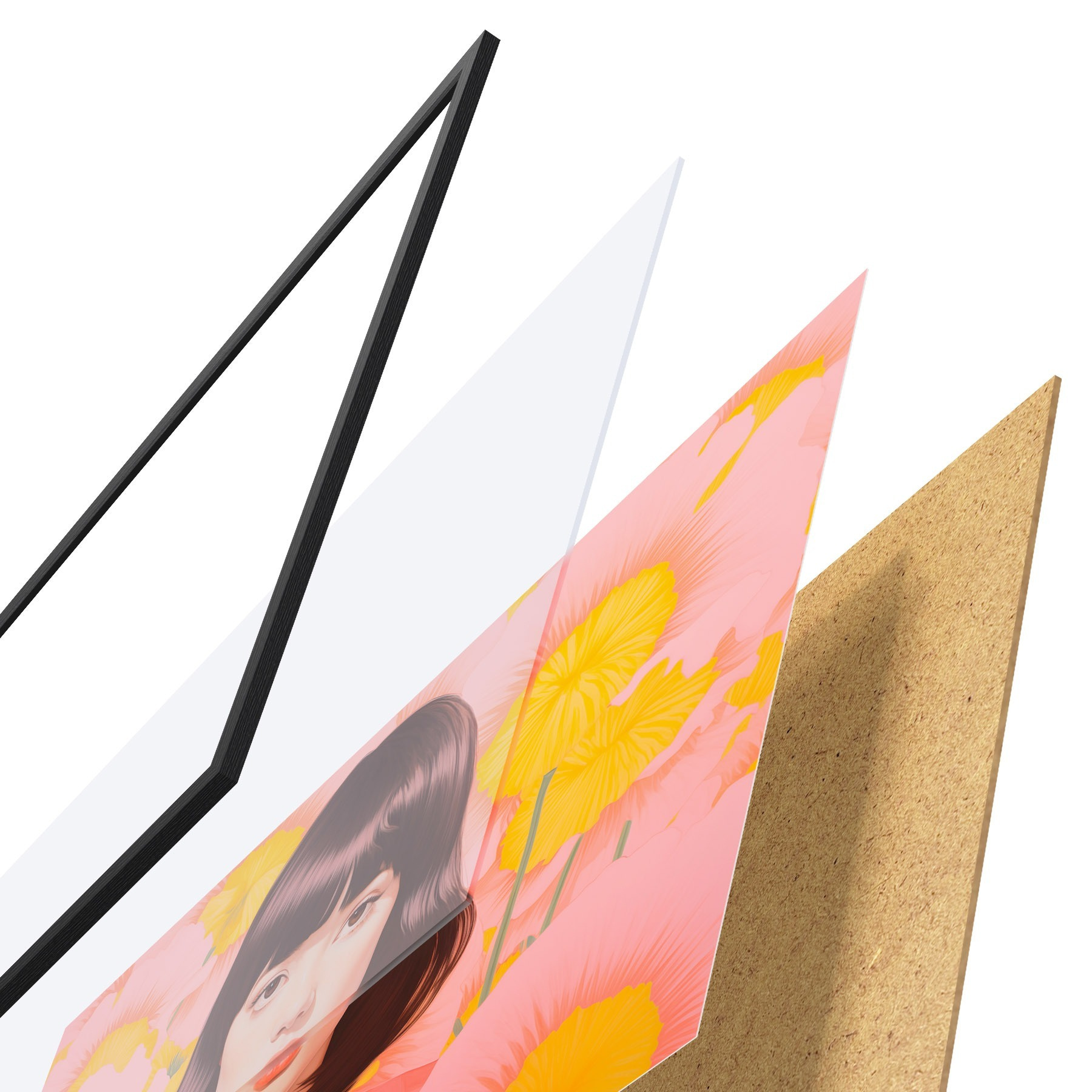 Plakát se skládá z rámu, plexiskla, tištěného obrazu a dřevotřískového podkladu. Díky úchytům na zadní straně lze plakát ihned zavěsit na zeď.