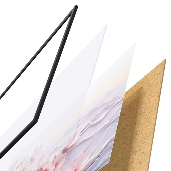 Plakát se skládá z rámu, plexiskla, tištěného obrazu a dřevotřískového podkladu. Díky úchytům na zadní straně lze plakát ihned zavěsit na zeď.