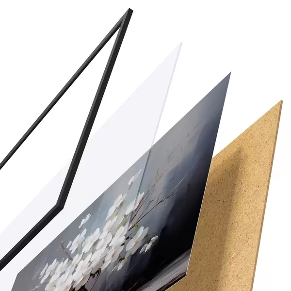 Plakát se skládá z rámu, plexiskla, tištěného obrazu a dřevotřískového podkladu. Díky úchytům na zadní straně lze plakát ihned zavěsit na zeď.