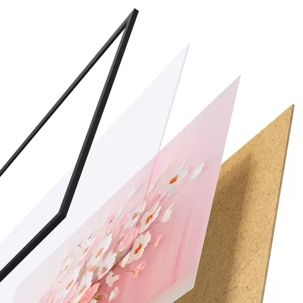 Plakát se skládá z rámu, plexiskla, tištěného obrazu a dřevotřískového podkladu. Díky úchytům na zadní straně lze plakát ihned zavěsit na zeď.