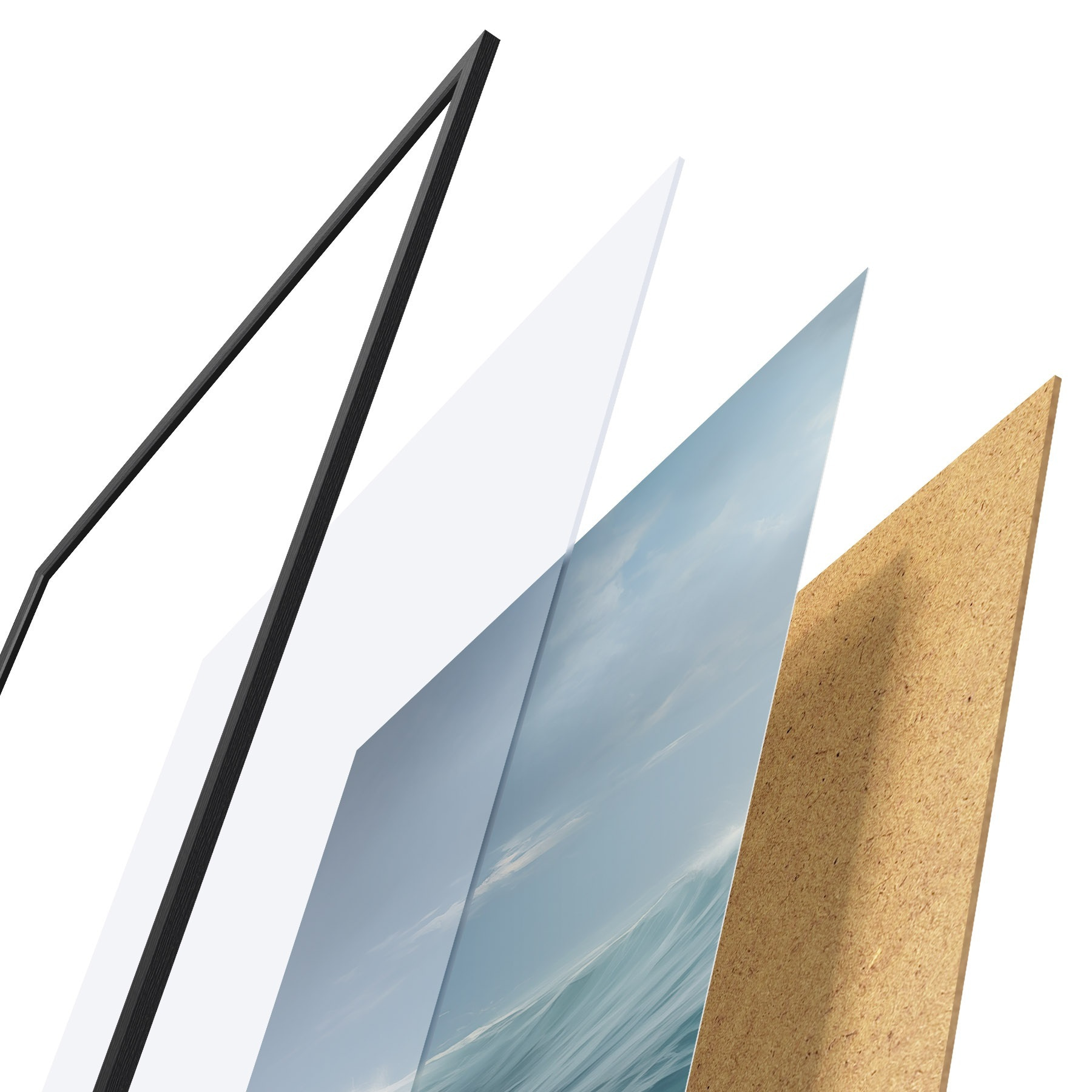 Plakát se skládá z rámu, plexiskla, tištěného obrazu a dřevotřískového podkladu. Díky úchytům na zadní straně lze plakát ihned zavěsit na zeď.